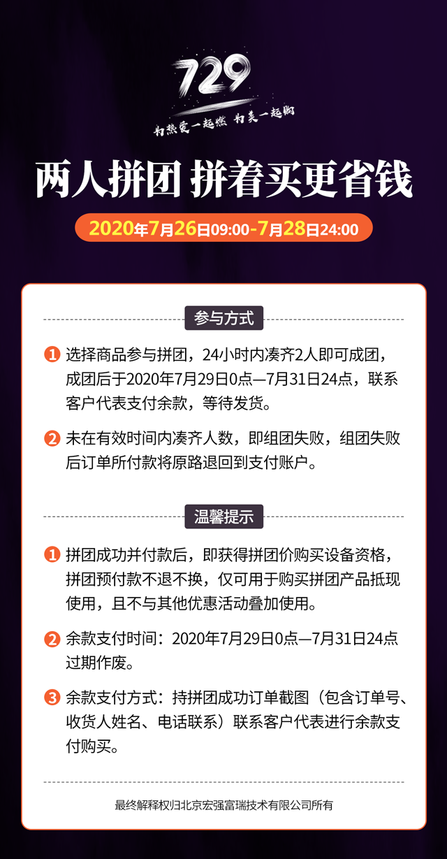 729周年盛典,一起来拼团活动进行中,更多活动信息可以联系北京宏强美容仪器厂家客服或者致电18811037549(微信同号)。