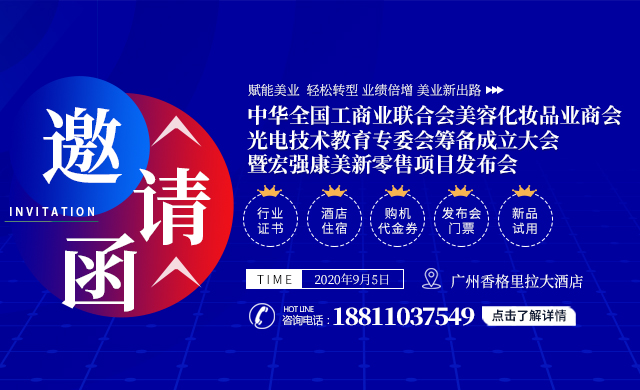 邀请函|中华全国工商业联合会美容化妆品业商会&光电技术教育专委会筹备成立大会暨宏强康美新零售项目发布会
